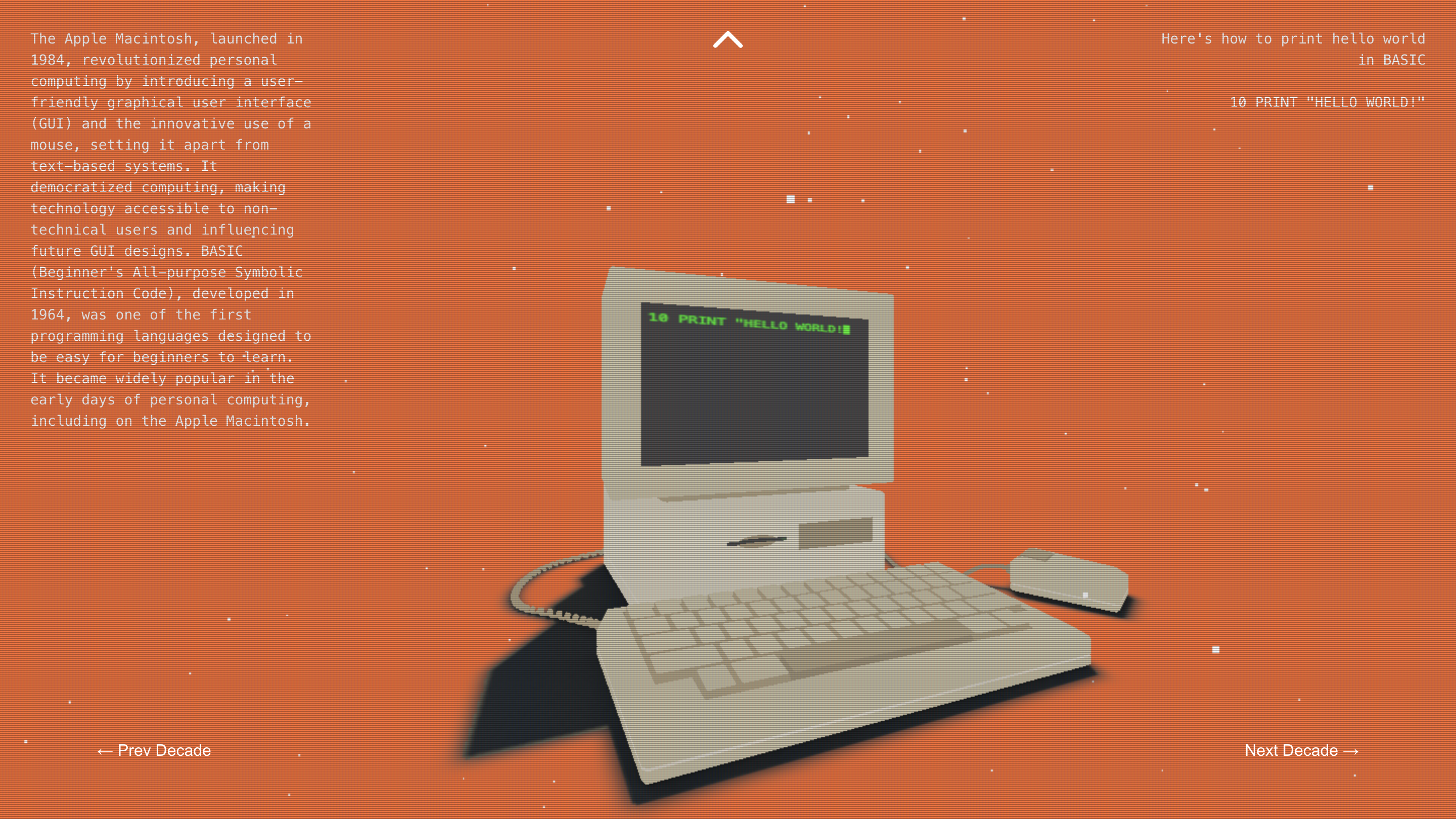 An interactive browser game where users explore programming history through 3D models and hands-on coding exercises.